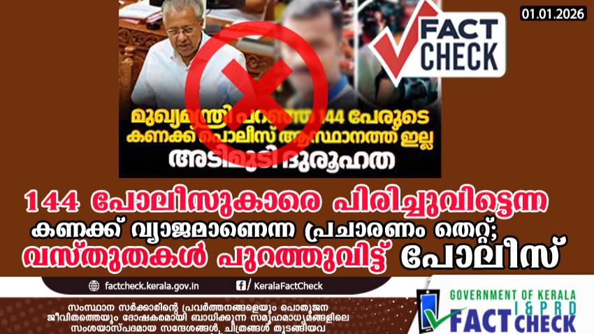144 പോലീസുകാരെ പിരിച്ചുവിട്ടെന്ന കണക്ക് വ്യാജമാണെന്ന പ്രചാരണം തെറ്റ്; വസ്തുതകൾ പുറത്തുവിട്ട് പോലീസ്
