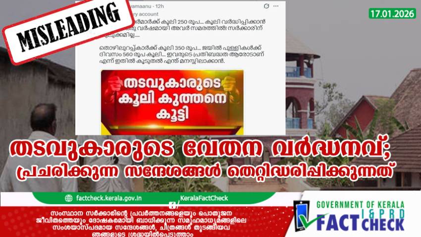 സംസ്ഥാനത്തെ ജയിൽ അന്തേവാസികളുടെ വേതനം സർക്കാർ വൻതോതിൽ വർദ്ധിപ്പിച്ചുവെന്നും തടവുകാർക്ക് വലിയ തുക പ്രതിദിനം ലഭിക്കുന്നുവെന്നുമുള്ള രീതിയിൽ സമൂഹമാധ്യമങ്ങളിൽ വ്യാപകമായ വിമർശനങ്ങളും തെറ്റിദ്ധരിപ്പിക്കുന്ന സന്ദേശങ്ങളും പ്രചരിക്കുന്നുണ്ട്.