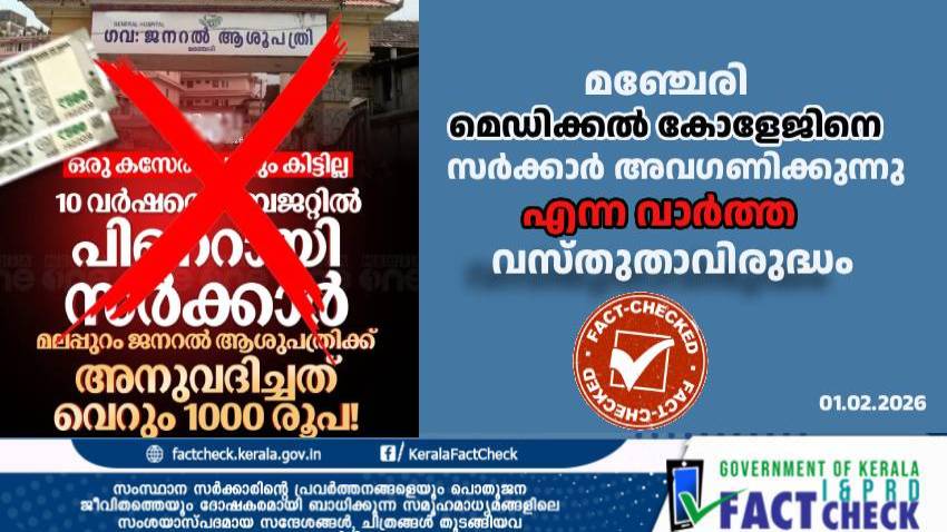 മഞ്ചേരി മെഡിക്കൽ കോളേജിനെ സർക്കാർ അവഗണിക്കുന്നു എന്ന വാർത്ത വസ്തുതാവിരുദ്ധം