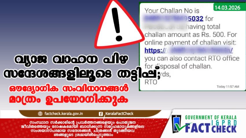 വാട്സാപ്പ് , എസ്.എം.എസ് എന്നിവ വഴി ലഭിക്കുന്ന ട്രാഫിക് പിഴ സന്ദേശങ്ങൾ മാത്രം വിശ്വസിച്ച് പണമടക്കാൻ ശ്രമിക്കരുത്.സംശയാസ്പദമായ ലിങ്കുകളിൽ ക്ലിക്ക് ചെയ്യാതിരിക്കാൻ പ്രത്യേകം ശ്രദ്ധിക്കുക. ബാങ്ക് അക്കൗണ്ട് വിവരങ്ങൾ, യു.പി.ഐ പിൻ എന്നിവ അപരിചിതമായ വെബ്സൈറ്റുകളിൽ ഒരു കാരണവശാലും നൽകരുത്. ട്രാഫിക് പിഴ സംബന്ധിച്ച വിവരങ്ങൾ പരിശോധിക്കാനും തുക അടയ്ക്കാനും കേന്ദ്ര ഗതാഗത മന്ത്രാലയത്തിന്റെ ഔദ്യോഗിക പോർട്ടലായ 'e-Challan' (echallan.parivahan.gov.in) അല്ലെങ്കിൽ കേരള പോലീസിന്റെ ഔദ്യോഗിക ആപ്പുകൾ മാത്രം ഉപയോഗിക്കുക.